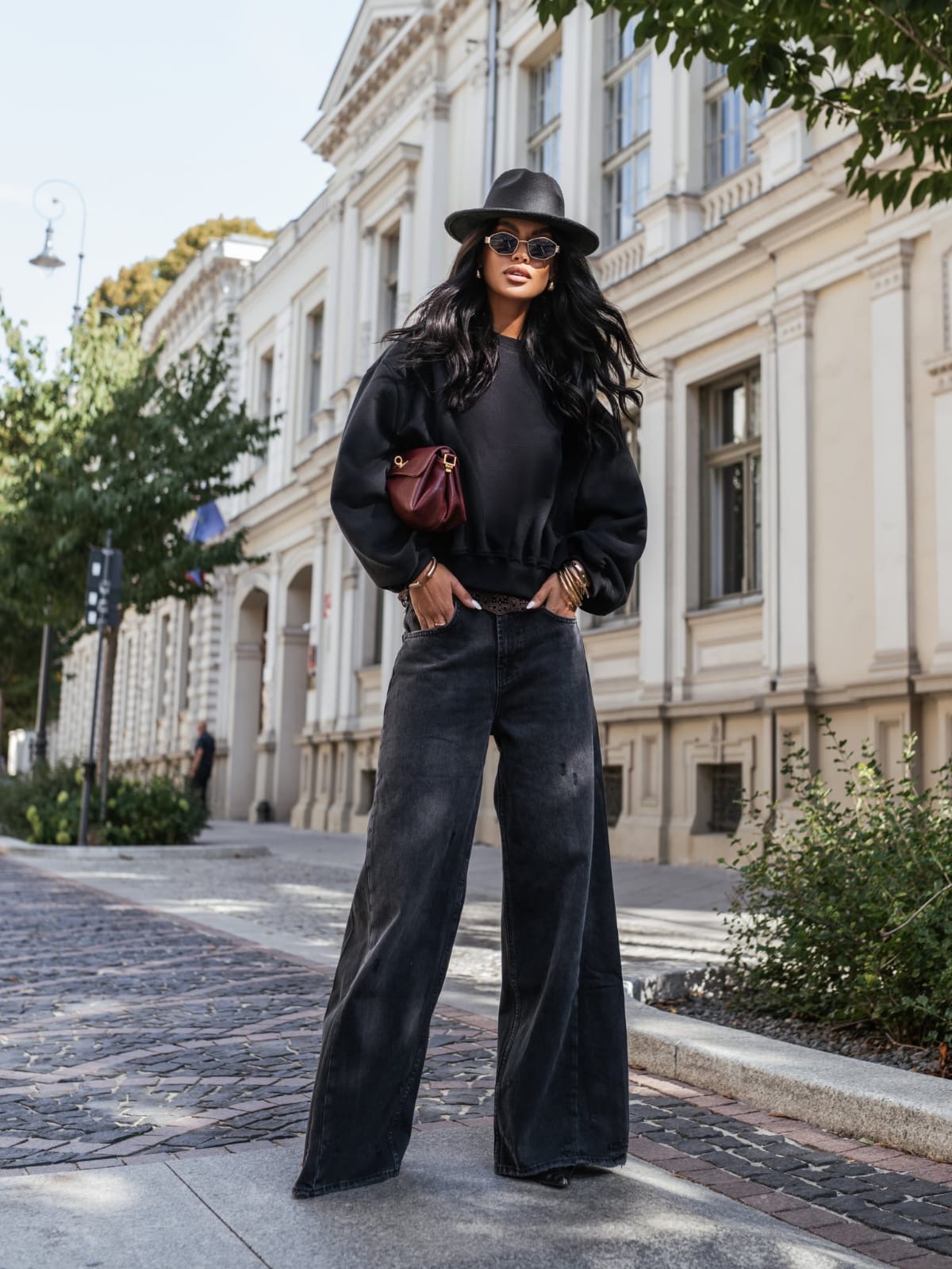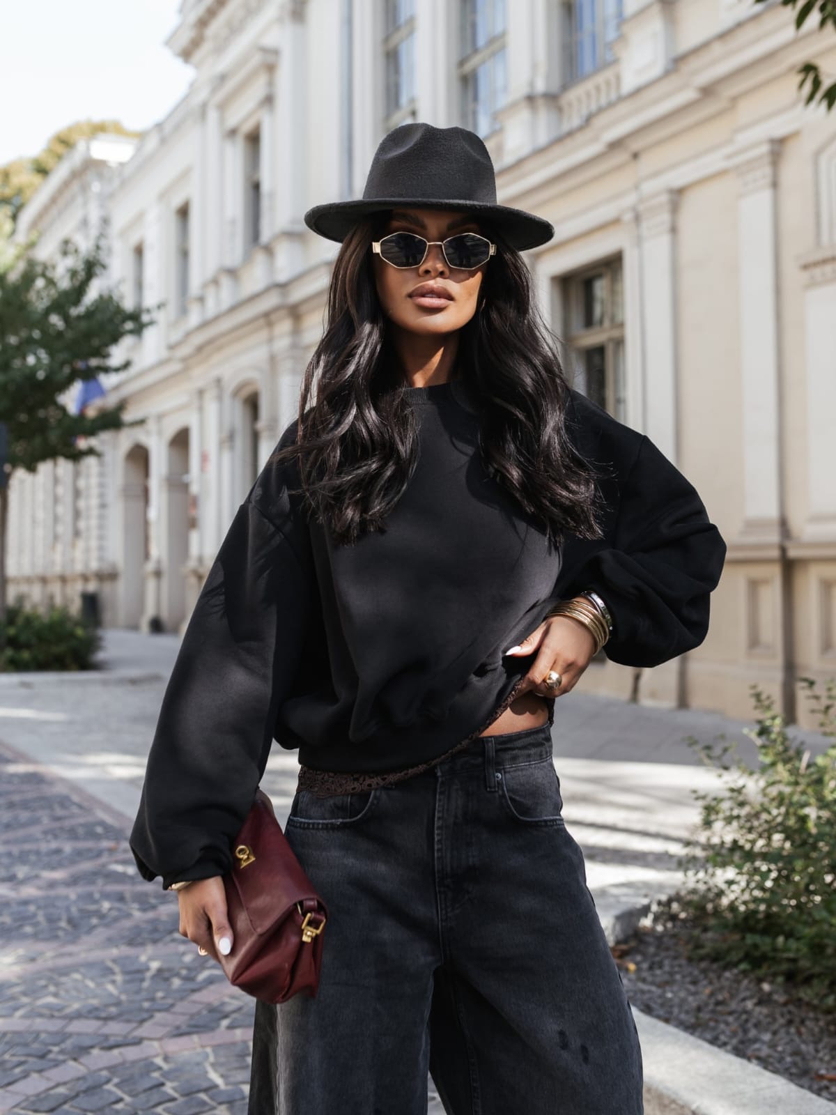 BLUZA Z OZDOBNĄ KORONKĄ CZARNA
