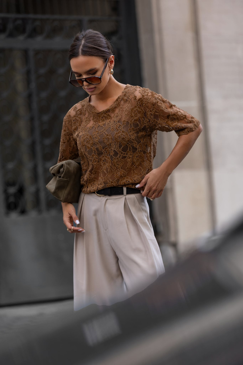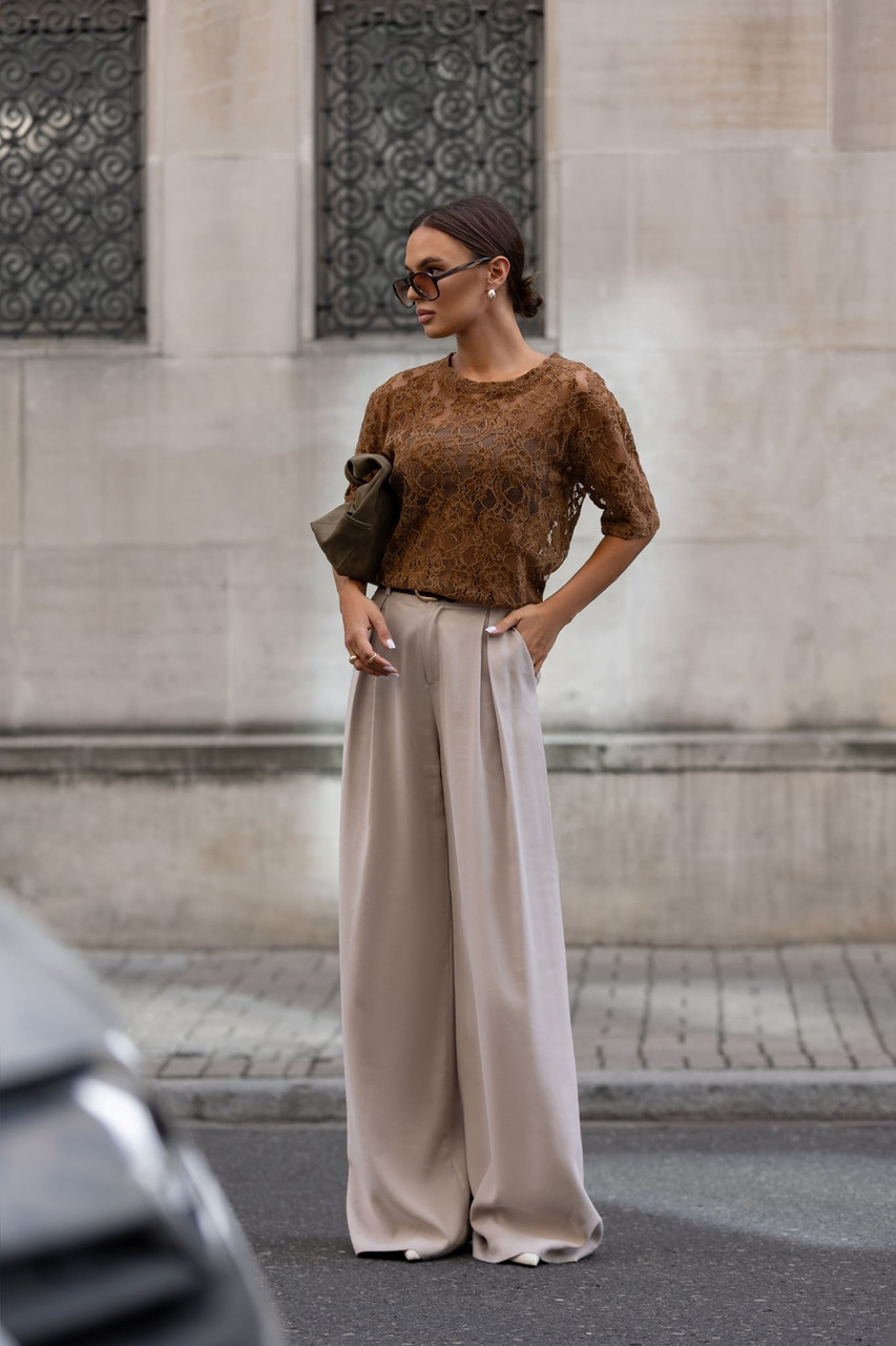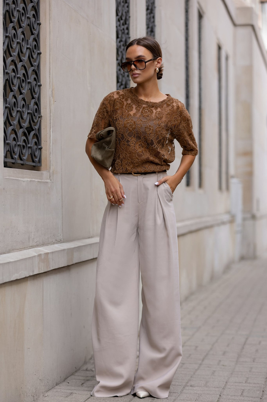 BLUZKA KORONKA KRÓTKI RĘKAW KAKAO