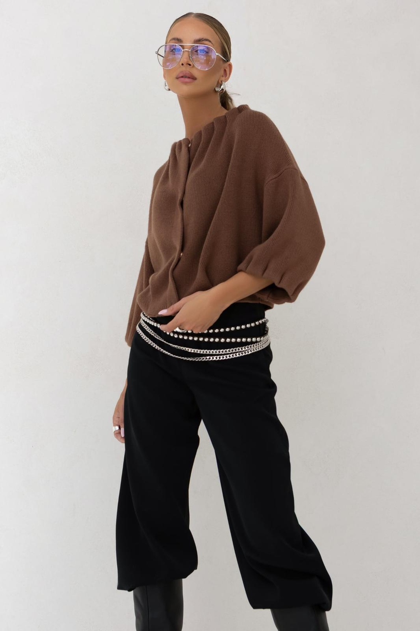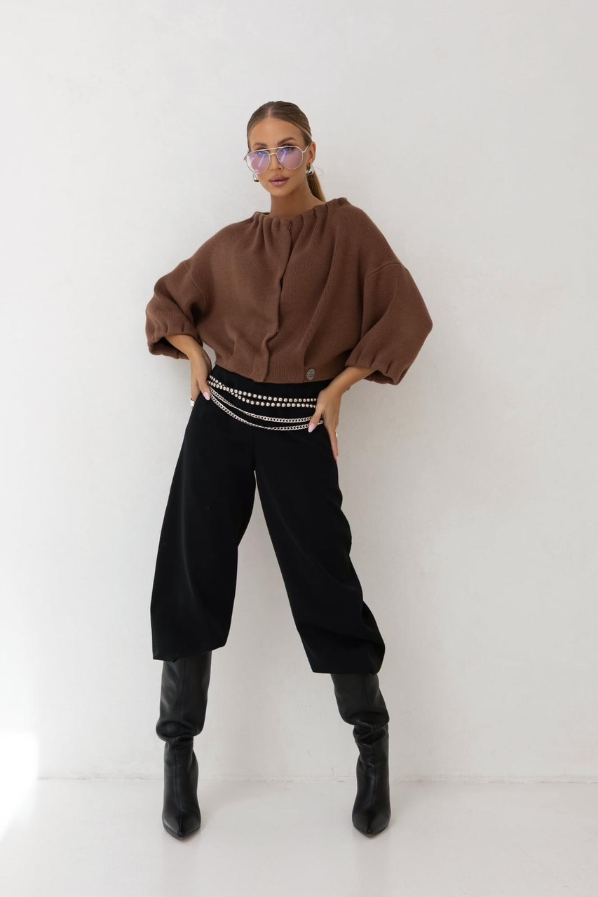 Świetny sweterek o kroju modnej bomberki, idealnie sprawdzi się do sportowych jak i eleganckich stylizacji. Zapinany jest na stylowe złote napy, natomiast z tyłu posiada marszczenie które sprawia, że bomberka nie wygląda na obszerną.