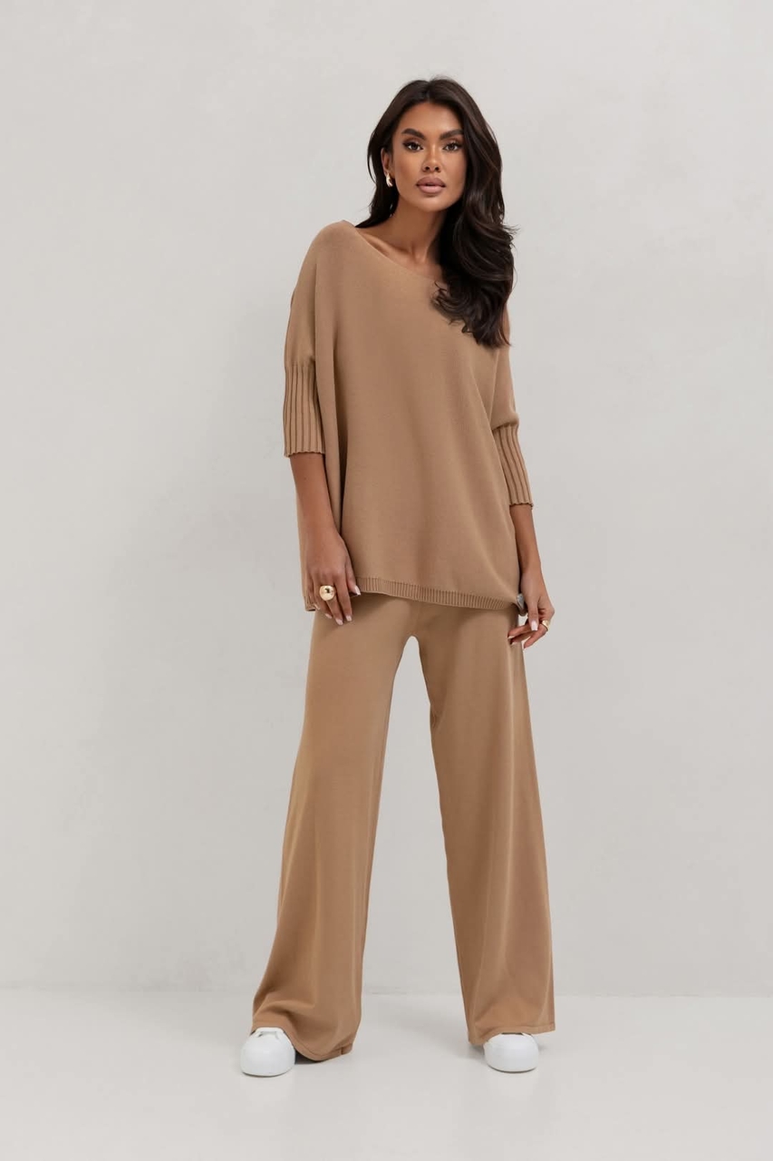 Dzianinowe spodnie z szeroką nogawką. Świetna opcja na wiosnę, oraz lato.