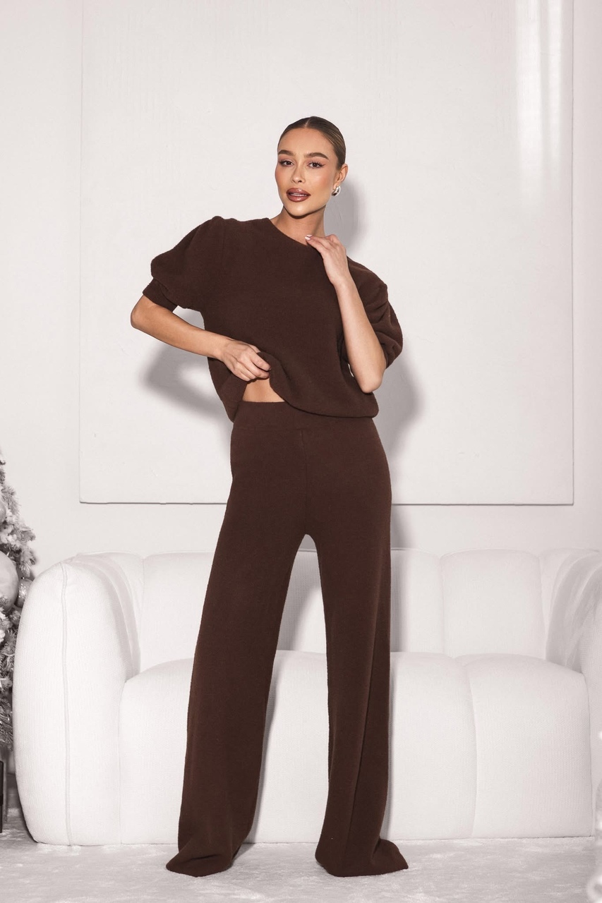 Wygodne spodnie z miękkiej sweterkowej dzianiny, idealna propozycja na chłodne dni.