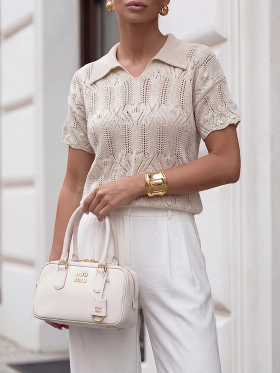Wyjątkowy ażurowy sweterek z efektownym kołnierzykiem, który dodaje nie codziennej elegancji.