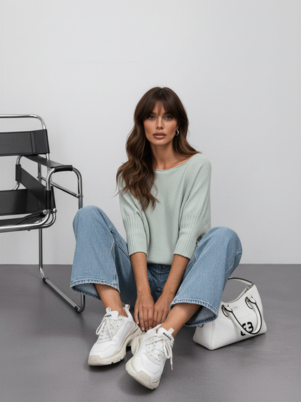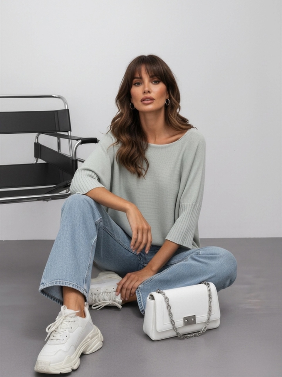 Świetny sweter o oversizowym kroju, wykonany z wysokiej jakości materiału. Jego dodatkowym atutem są ściągacze przy rękawie, co dodaje mu uroku i oryginalności.