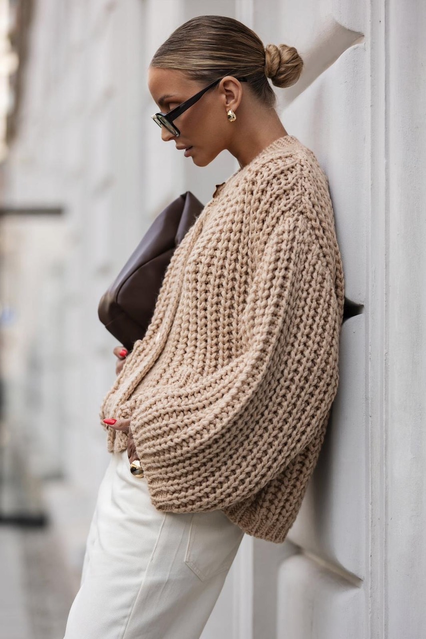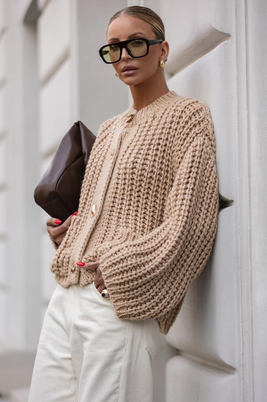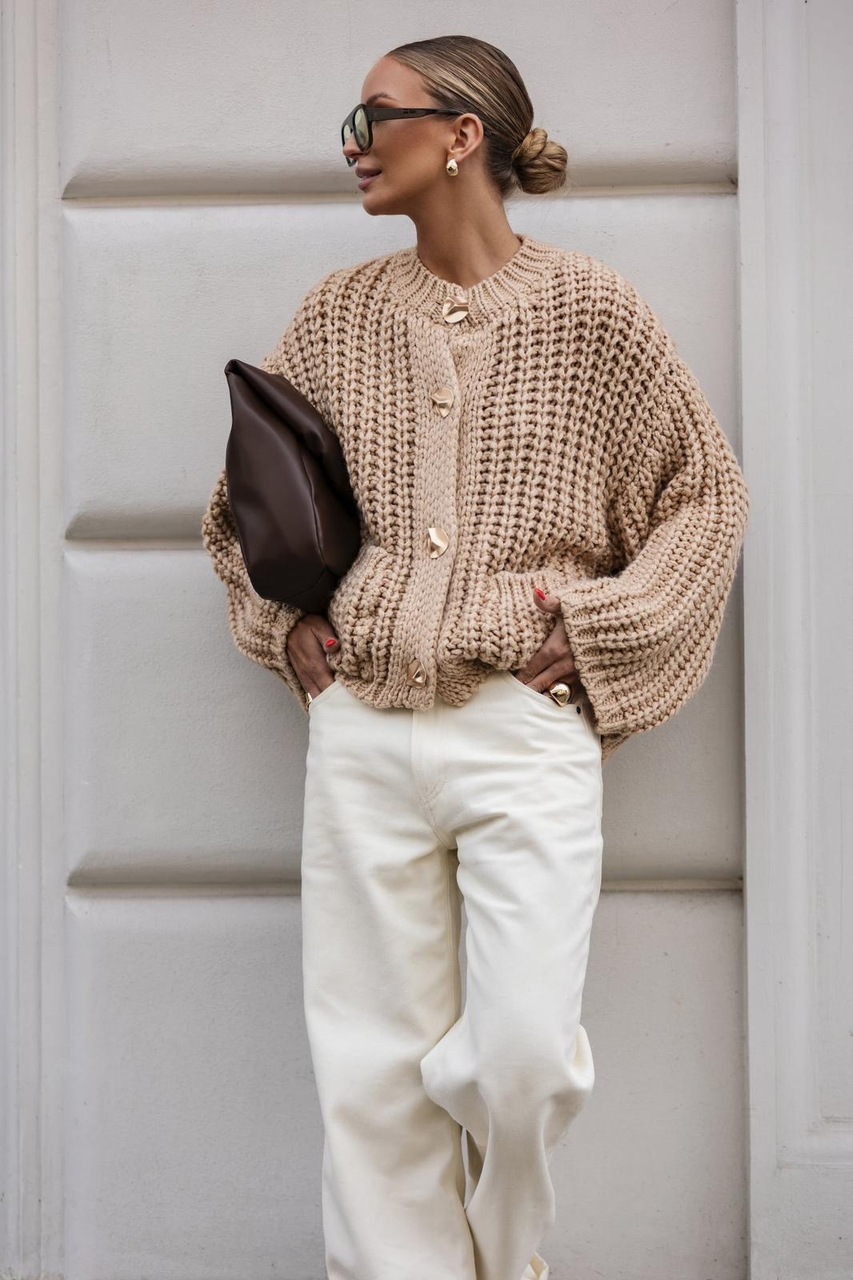 KARDIGAN Z GRUBYM SPLOTEM BEŻ