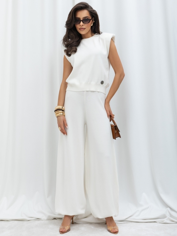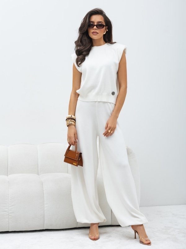 Nowoczesny top o minimalistycznym kroju posiada wyraźnie zaznaczone ramiona, które nadają sylwetce struktury i elegancji, a miękki materiał zapewnia komfort noszenia. Prosty, ale wyrazisty fason sprawia, że top doskonale sprawdzi się w codziennych stylizacjach.