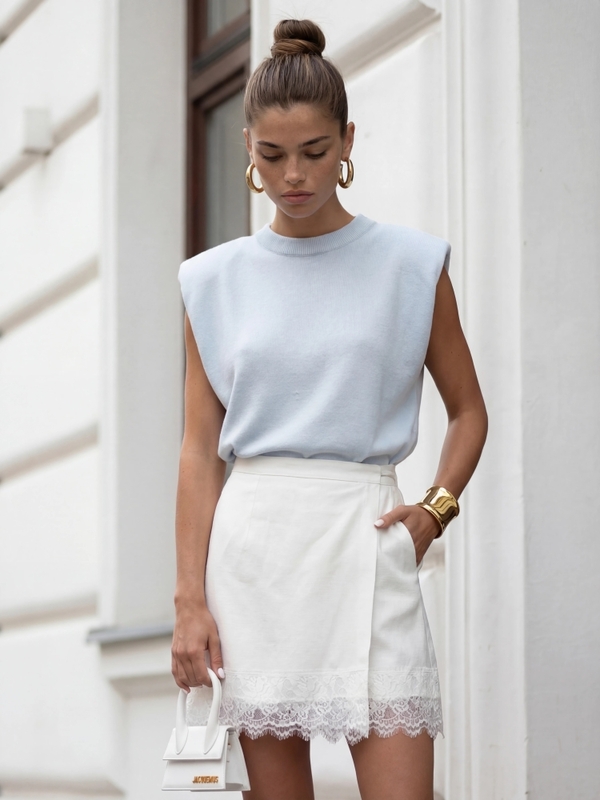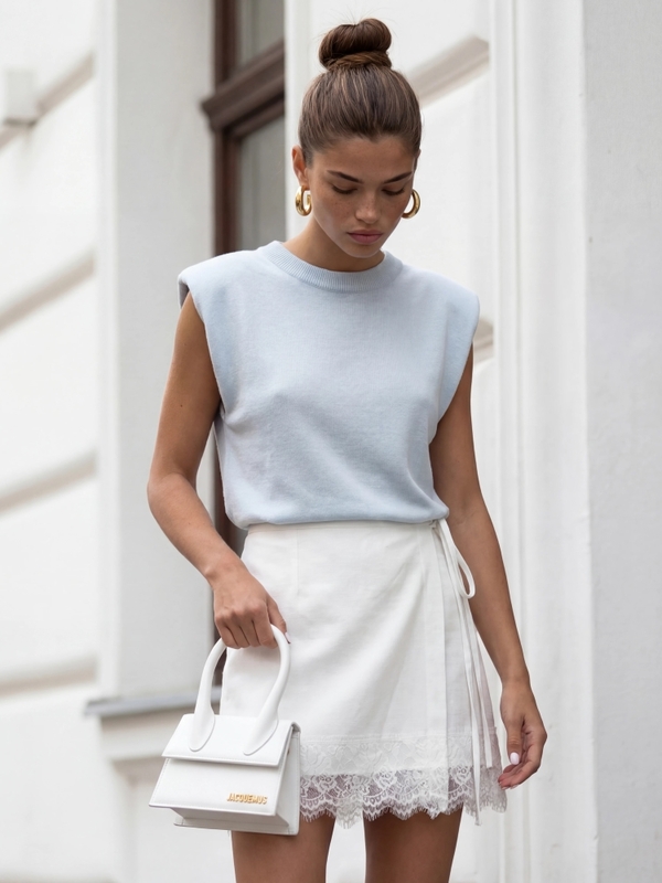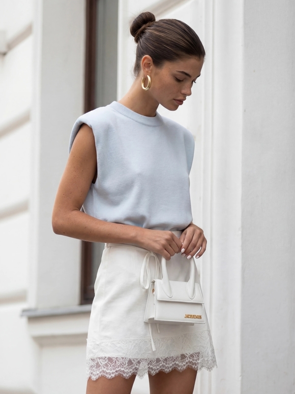 Nowoczesny top o minimalistycznym kroju posiada wyraźnie zaznaczone ramiona, które nadają sylwetce struktury i elegancji, a miękki materiał zapewnia komfort noszenia. Prosty, ale wyrazisty fason sprawia, że top doskonale sprawdzi się w codziennych stylizacjach.